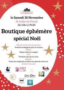 Venez faire vos courses de Noël, vous faire plaisir, ou même faire les curieux en venant vous promener à La Grange le 30 novembre 2019 de 10h à 17h.