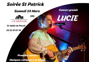 Pour fêter la St Patrick, venez écouter Lucie en concert! Vous découvrirez également la harpe celtique en première partie, dans une ambiance à l’irlandaise!